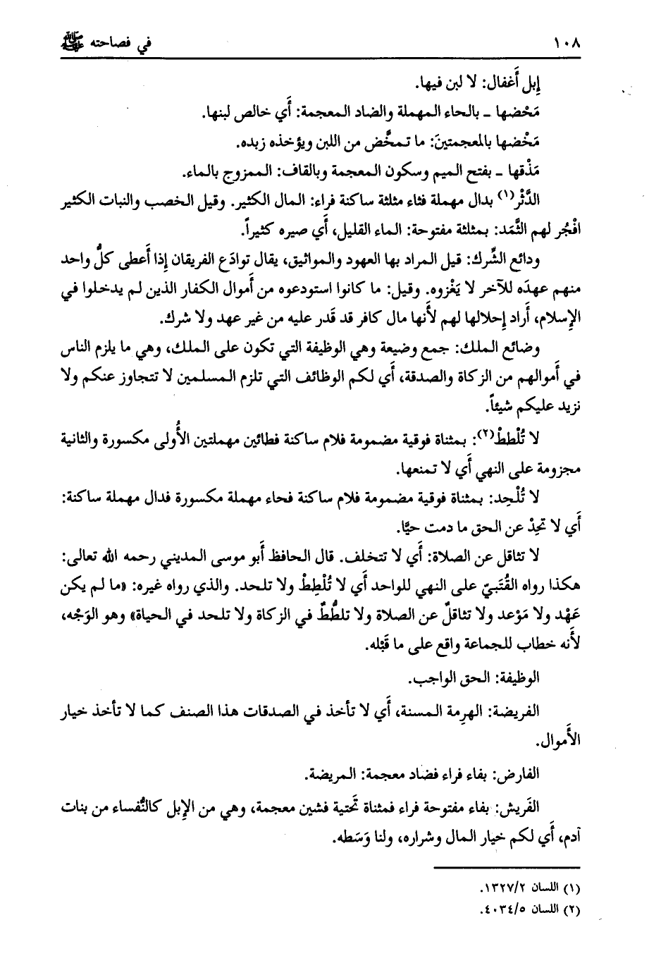هكذا رواه القتبي على النهي للواحد أي لا تلطط ولا تلحد. والذي رواه غيره: «ما لم يكن عهد ولا موعد ولا تثاقل عن الصلاة ولا تلطط في الزكاة ولا تلحد في الحياة» وهو الوجه، لأنه خطاب للجماعة واقع على ما قبله.