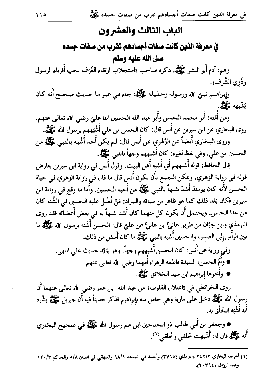 الباب الثالث والعشرون في معرفة الذين كانت صفات أجسادهم تقرب من صفات جسده صلى الله عليه وسلم