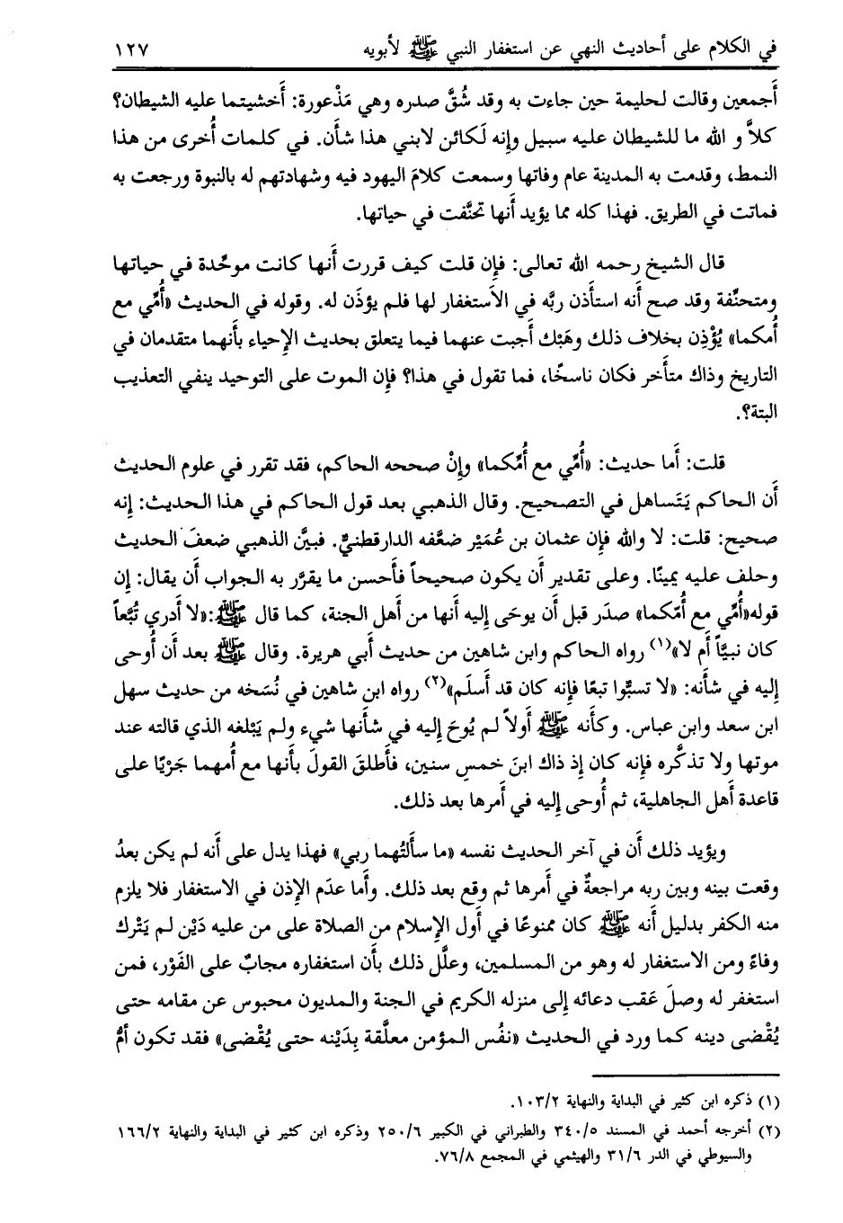 قال الشيخ رحمه اللَّه تعالى: فإن قلت كيف قررت أنها كانت موحدة في حياتها ومتحنفة وقد صح أنه استأذن ربه في الاستغفار لها فلم يؤذن له.