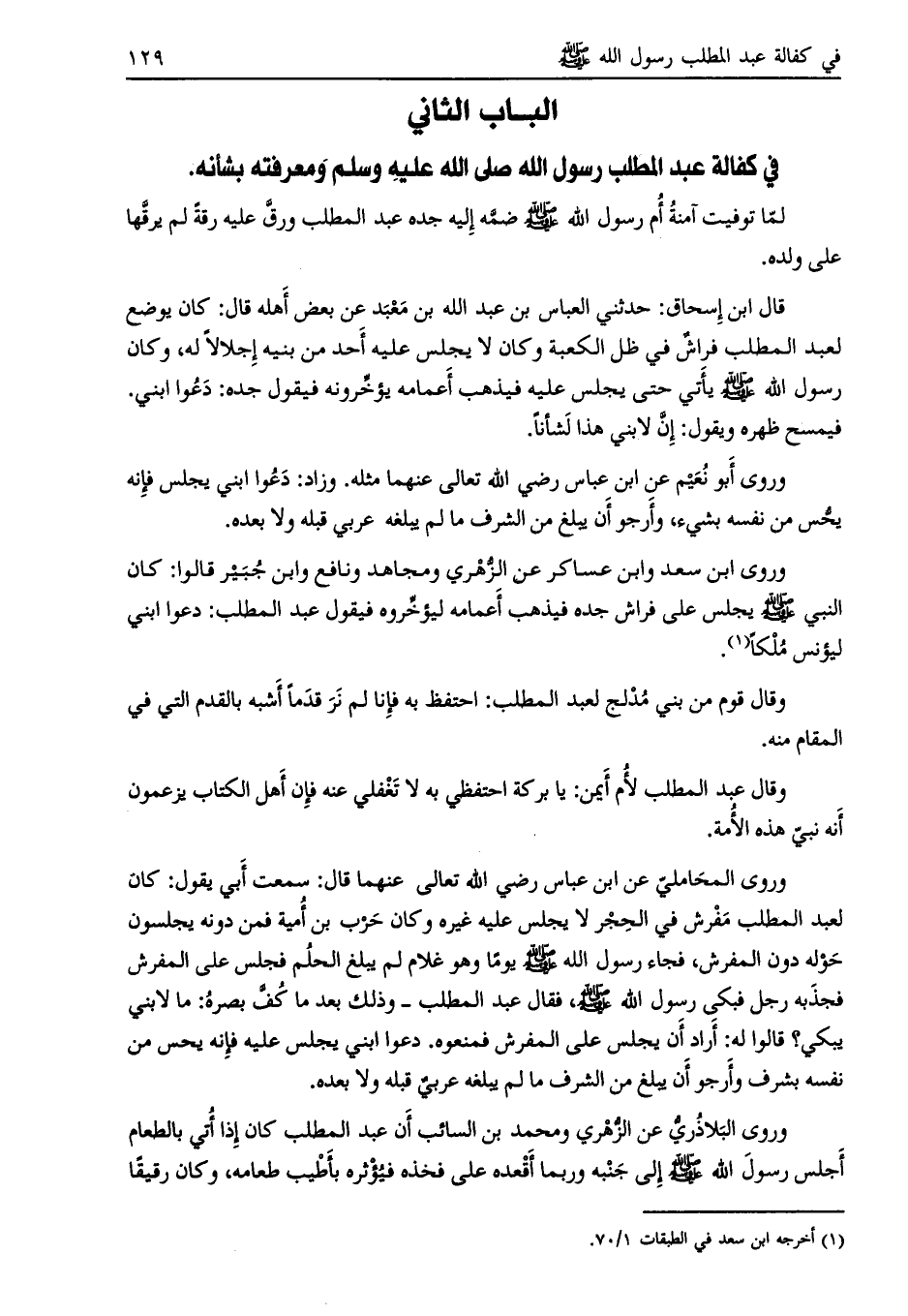 الباب الثاني في كفالة عبد المطلب رسول الله صلى الله عليه وسلم ومعرفته بشأنه.