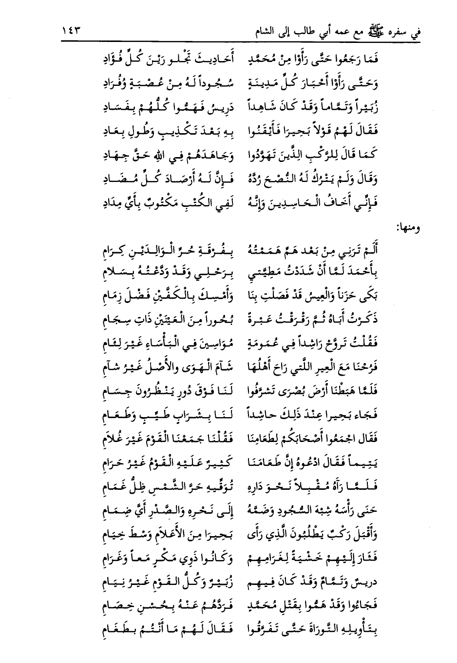 فجاء بحيرا عند ذلك حاشدا ... لنا بشراب طيب وطعام