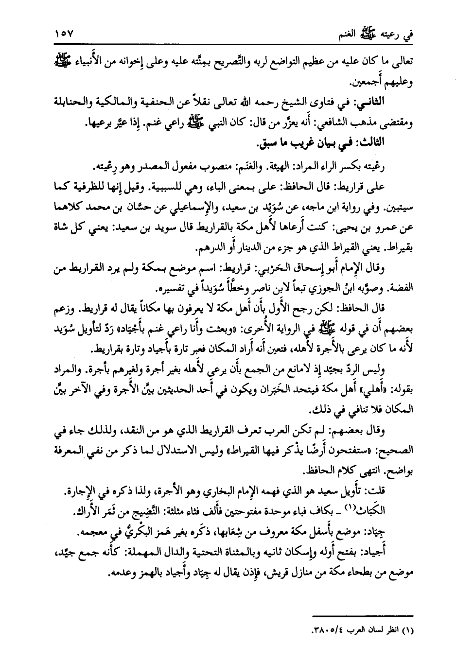 وقال بعضهم: لم تكن العرب تعرف القراريط الذي هو من النقد، ولذلك جاء في الصحيح: «ستفتحون أرضا يذكر فيها القيراط» وليس الاستدلال لما ذكر من نفي المعرفة بواضح. انتهى كلام الحافظ.