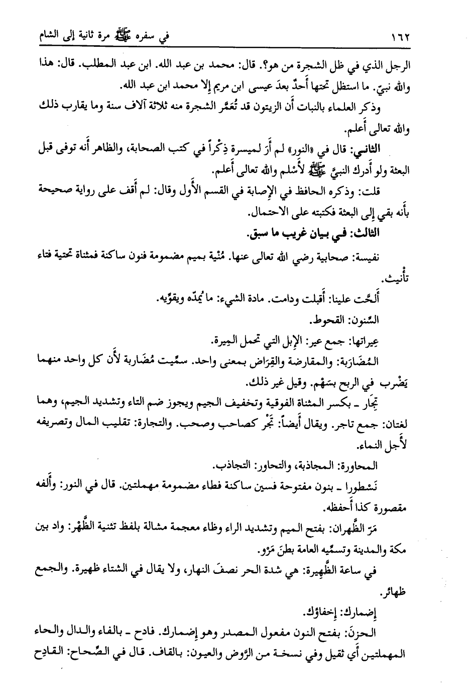 الرجل الذي في ظل الشجرة من هو؟. قال: محمد بن عبد الله. ابن عبد المطلب. قال: هذا واللَّه نبي. ما استظل تحتها أحد بعد عيسى ابن مريم إلا محمد ابن عبد الله.