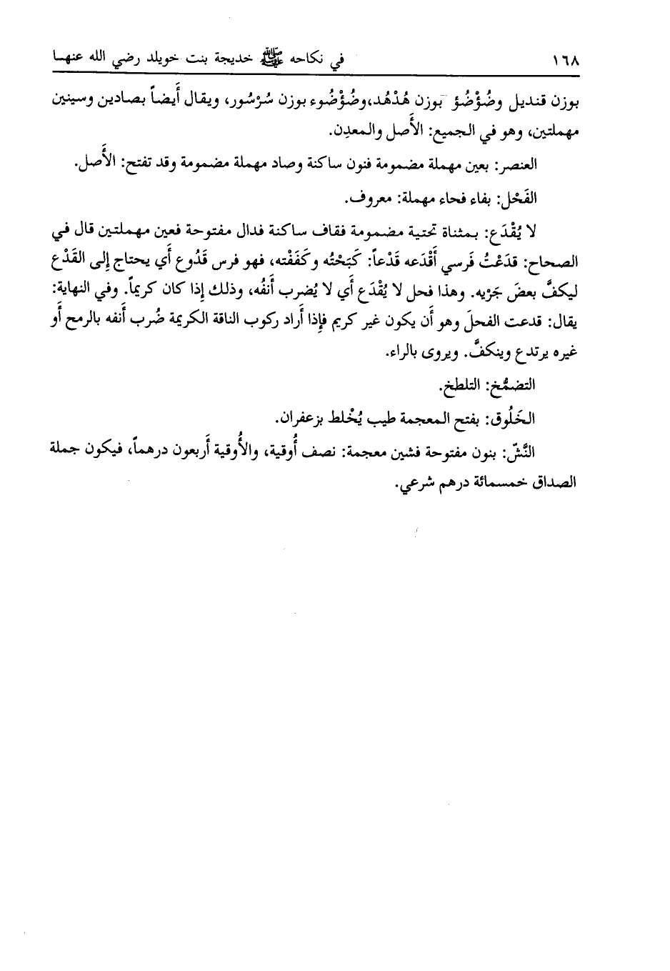 النش: بنون مفتوحة فشين معجمة: نصف أوقية، والأوقية أربعون درهما، فيكون جملة الصداق خمسمائة درهم شرعي.