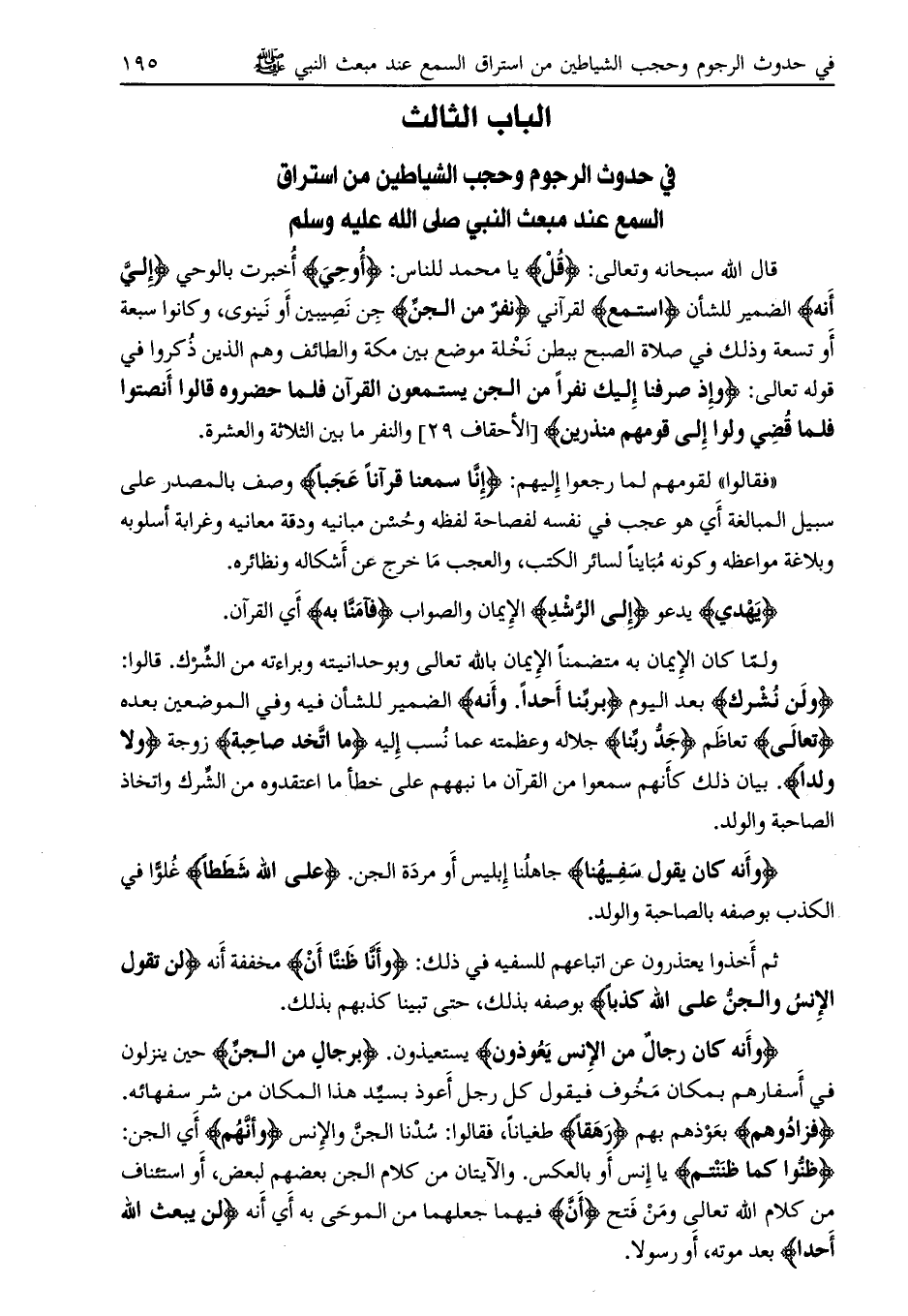 الباب الثالث في حدوث الرجوم وحجب الشياطين من استراق السمع عند مبعث النبي صلى الله عليه وسلم