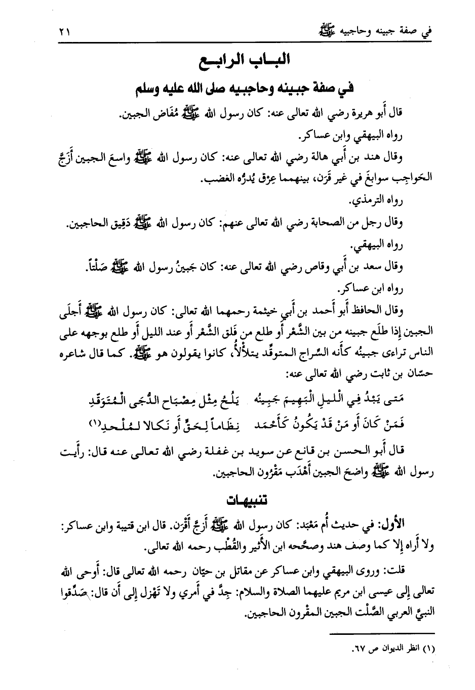 الباب الرابع في صفة جبينه وحاجبيه صلى اللَّه عليه وسلم