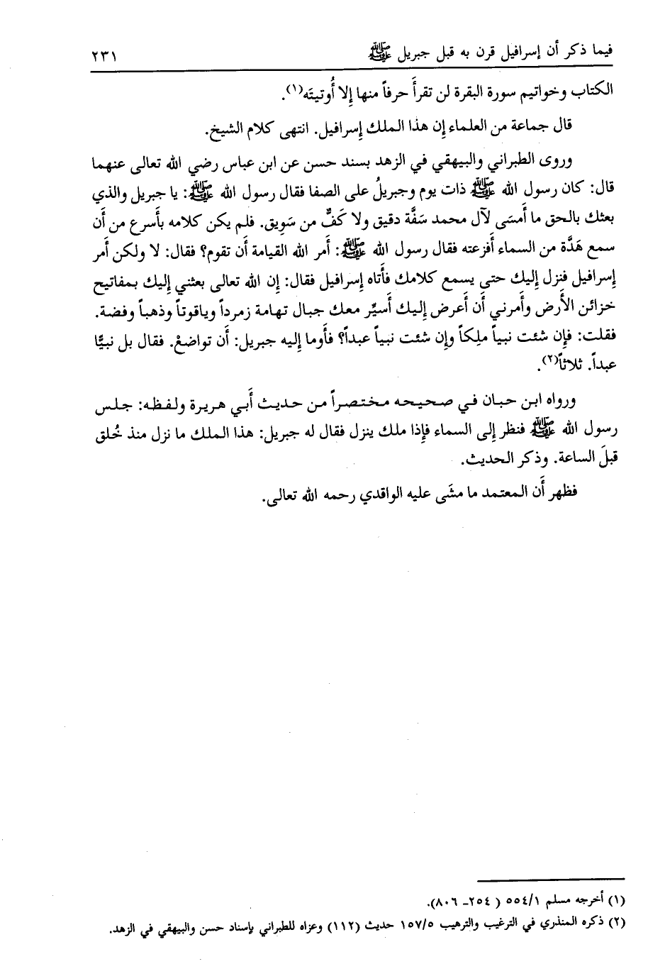 قال جماعة من العلماء إن هذا الملك إسرافيل. انتهى كلام الشيخ.