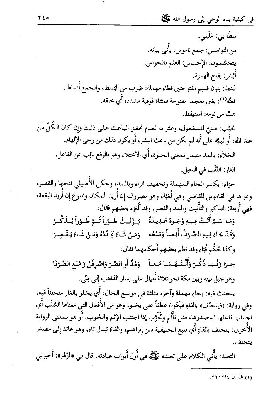 وفي رواية: «فيتحنف» بالفاء فيكون عطفاً على يخلو، وهو من الأفعال التي معناها السلب أي اجتناب فاعلها لمصدرها، مثل تأثم وتحوب إذا اجتنب الإثم والحوب. أو هو بمعنى الرواية الأخرى: يتحنف بالفاء أي يتبع الحنيفية دين إبراهيم، والفاء تبدل ثاء، وهو عائد إلى مصدر يتحنف.