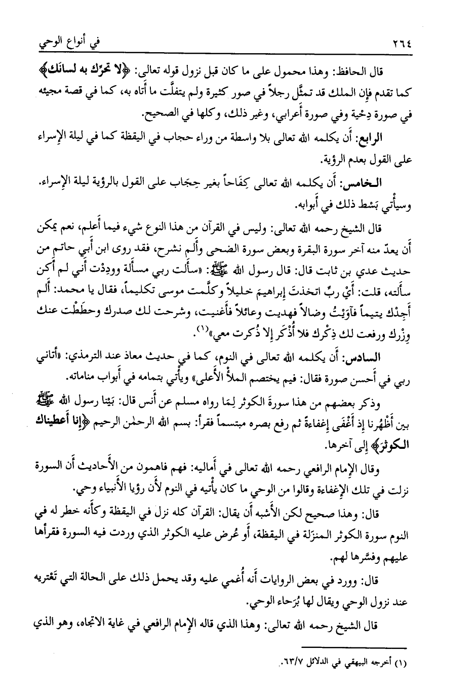 وقال الإمام الرافعي رحمه اللَّه تعالى في أماليه: فهم فاهمون من الأحاديث أن السورة نزلت في تلك الإغفاءة وقالوا من الوحي ما كان يأتيه في النوم لأن رؤيا الأنبياء وحي.