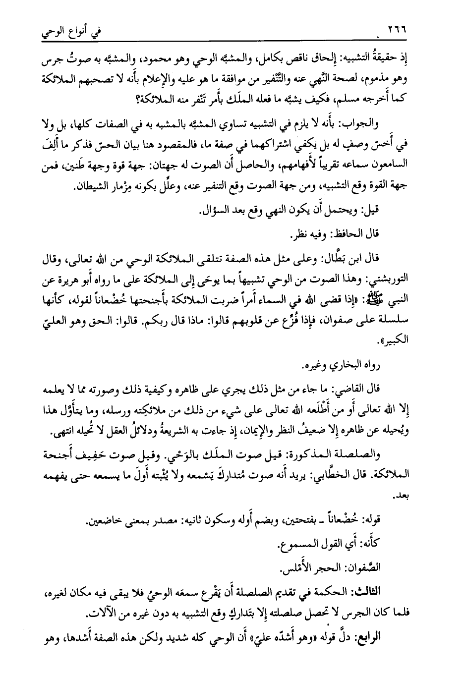 قال ابن بطال: وعلى مثل هذه الصفة تتلقى الملائكة الوحي من اللَّه تعالى، وقال التوربشتي: وهذا الصوت من الوحي تشبيها بما يوحى إلى الملائكة على ما