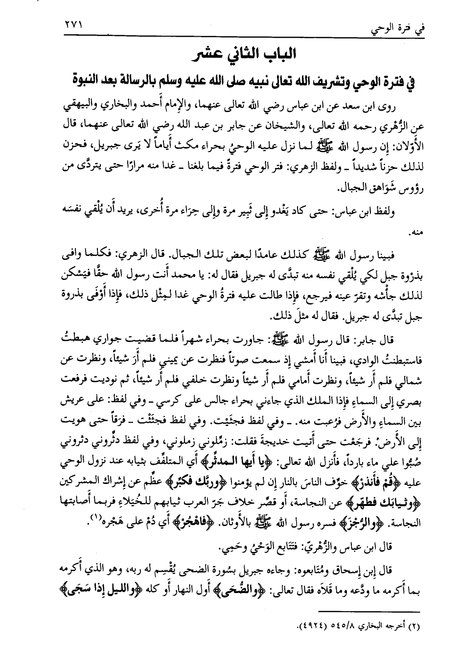 الباب الثاني عشر في فترة الوحي وتشريف الله تعالى نبيه صلى الله عليه وسلّم بالرسالة بعد النبوة