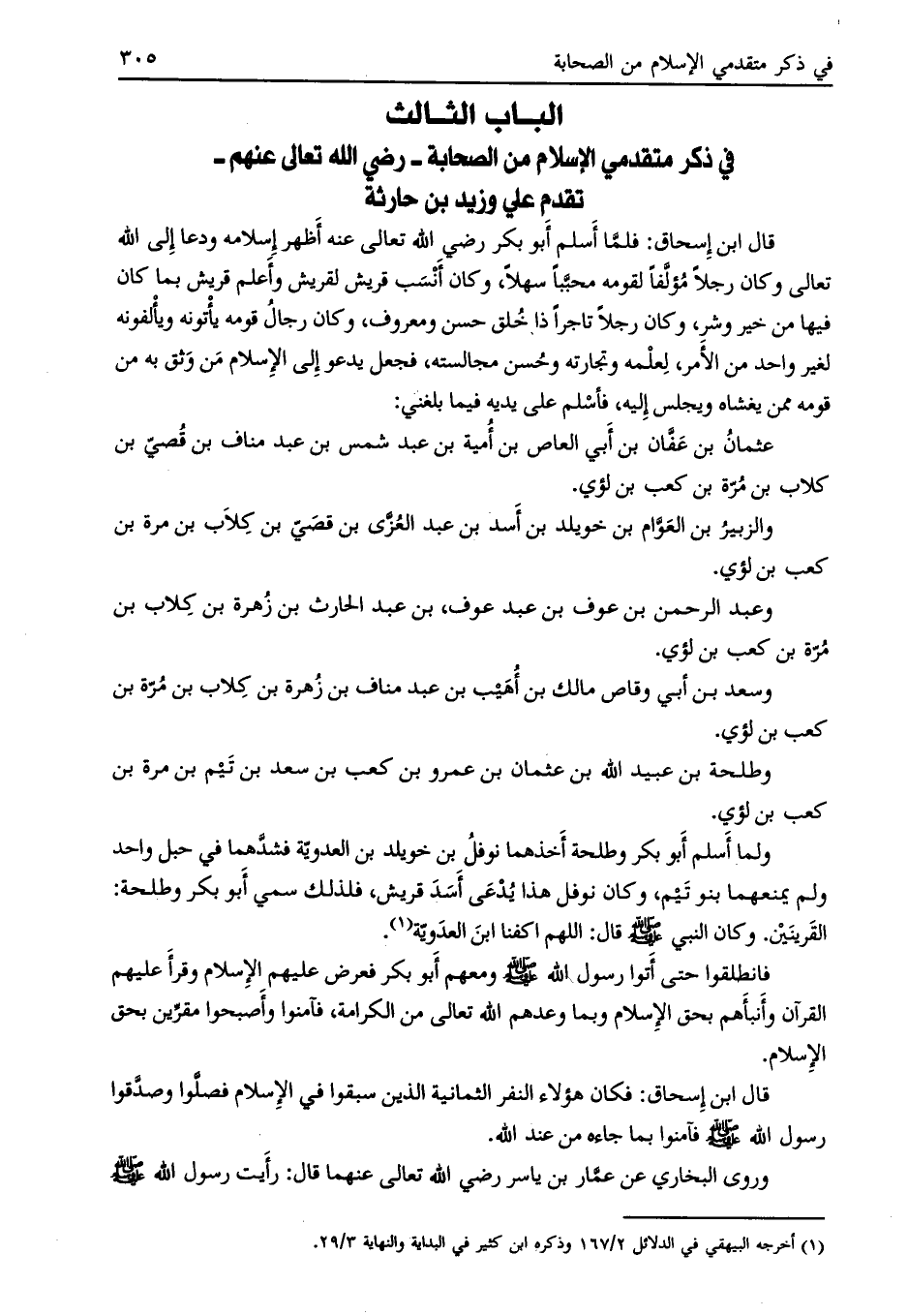 الباب الثالث في ذكر متقدّمي الإسلام من الصحابة- رضي الله تعالى عنهم- تقدم علي وزيد بن حارثة