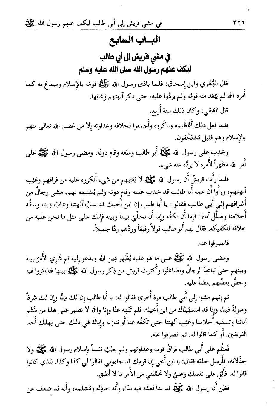 الباب السابع في مشي قريش إلى أبي طالب ليكفّ عنهم رسول الله صلى الله عليه وسلم