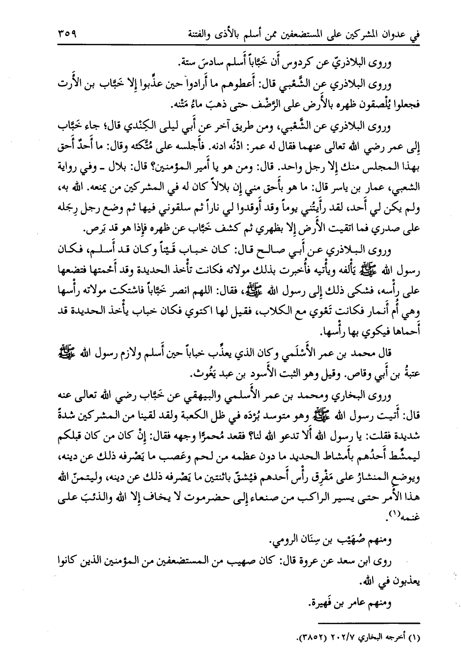 وروى البلاذري عن الشّعبي قال: أعطوهم ما أرادوا حين عذّبوا إلا خبّاب بن الأرت فجعلوا يلصقون ظهره بالأرض على الرّضف حتى ذهب ماء متنه.