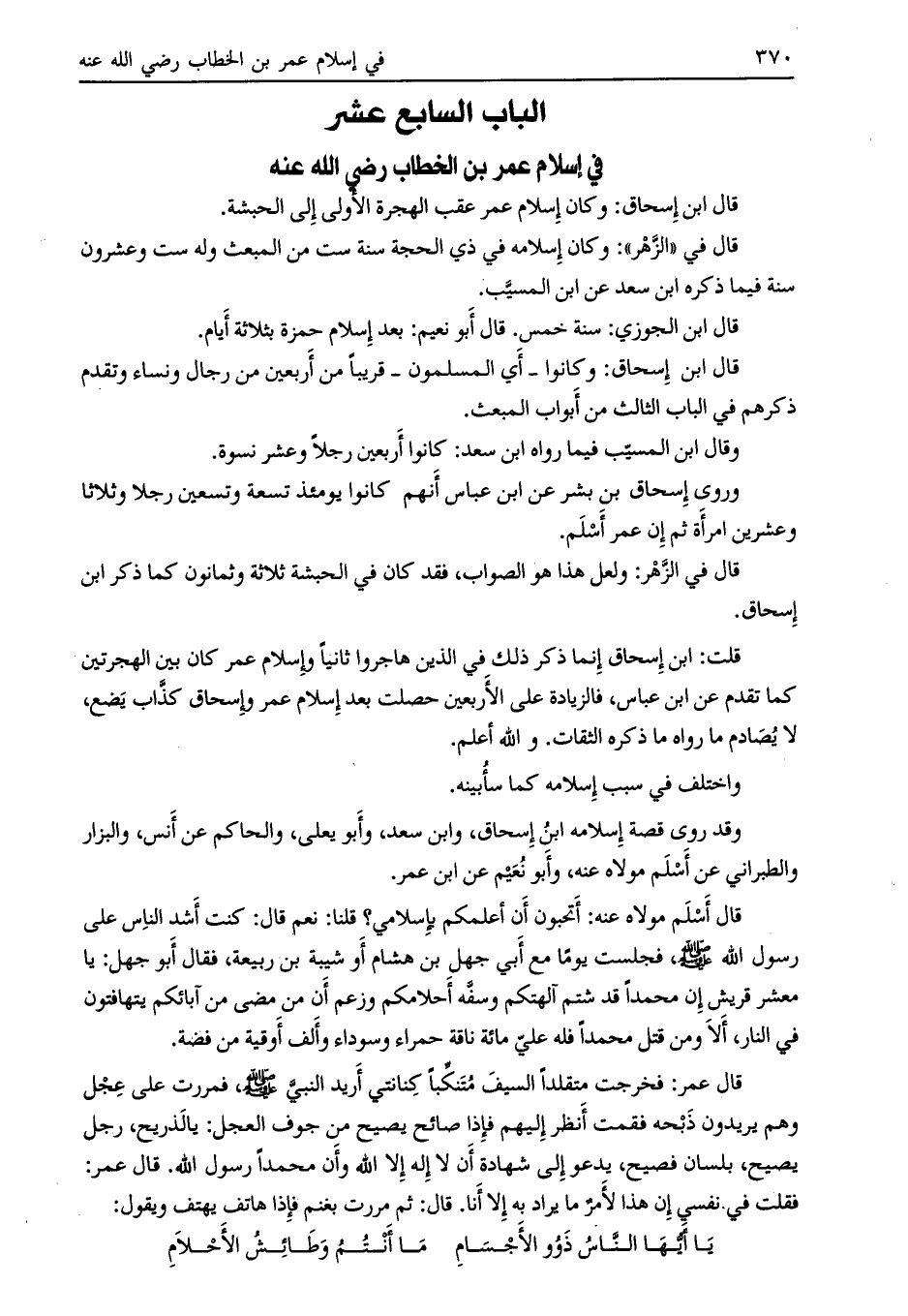الباب السابع عشر في إسلام عمر بن الخطاب رضي الله عنه