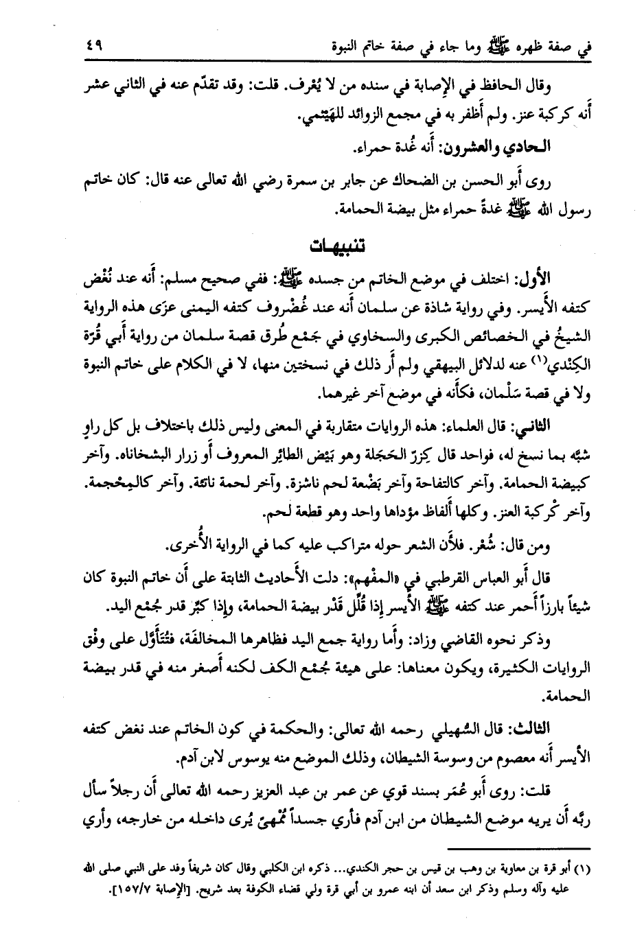 الثاني: قال العلماء: هذه الروايات متقاربة في المعنى وليس ذلك باختلاف بل كل راو شبه بما نسخ له، فواحد قال كزر الحجلة وهو بيض الطائر المعروف أو زرار البشخاناه. وآخر كبيضة الحمامة. وآخر كالتفاحة وآخر بضعة لحم ناشزة. وآخر لحمة ناتئة. وآخر كالمحجمة.