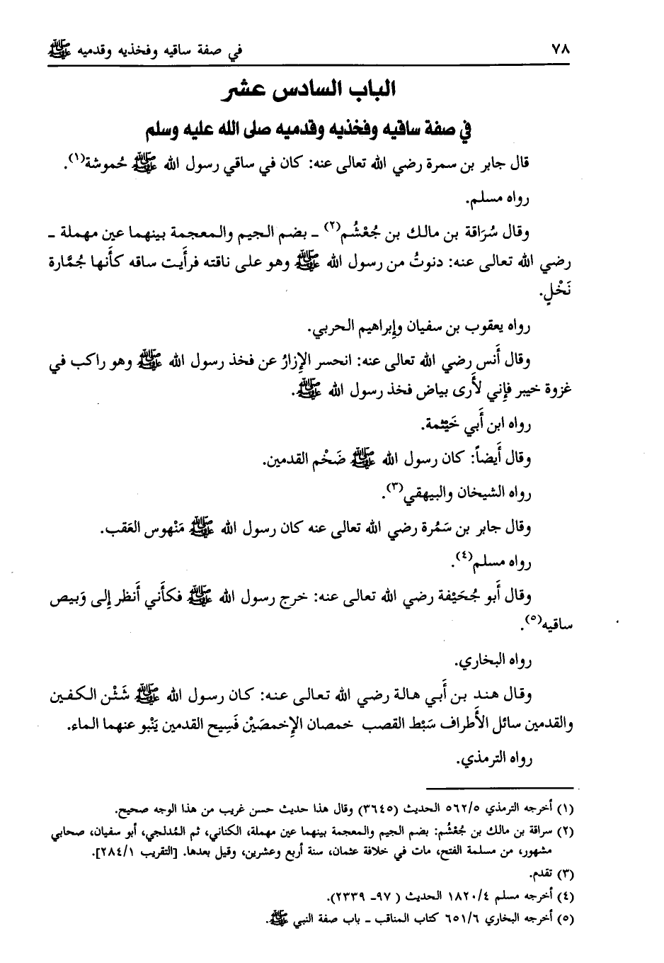 الباب السادس عشر في صفة ساقيه وفخذيه وقدميه صلى الله عليه وسلم