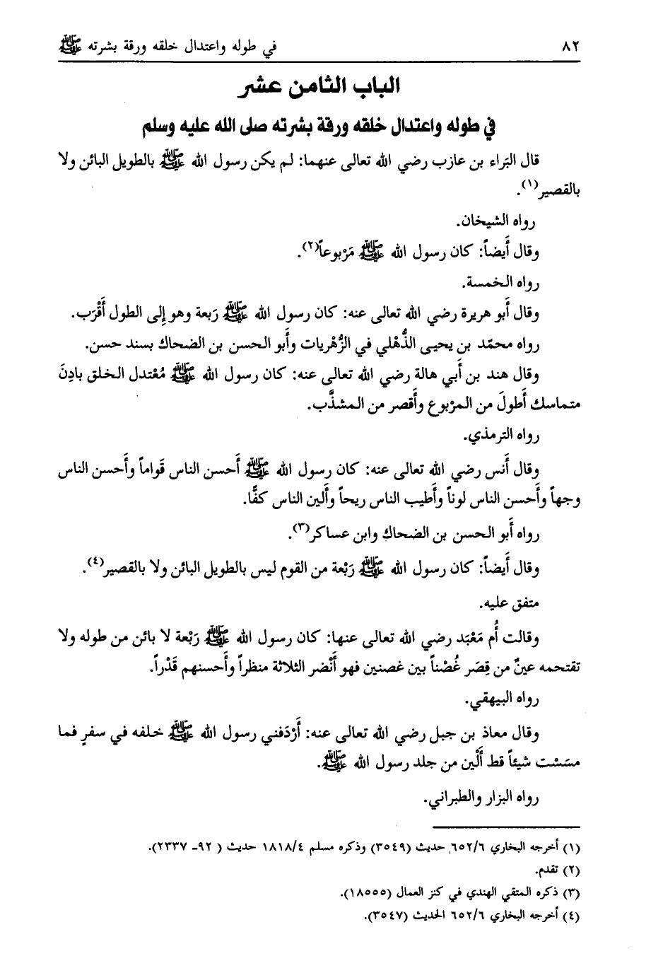 الباب الثامن عشر في طوله واعتدال خلقه ورقة بشرته صلى الله عليه وسلم