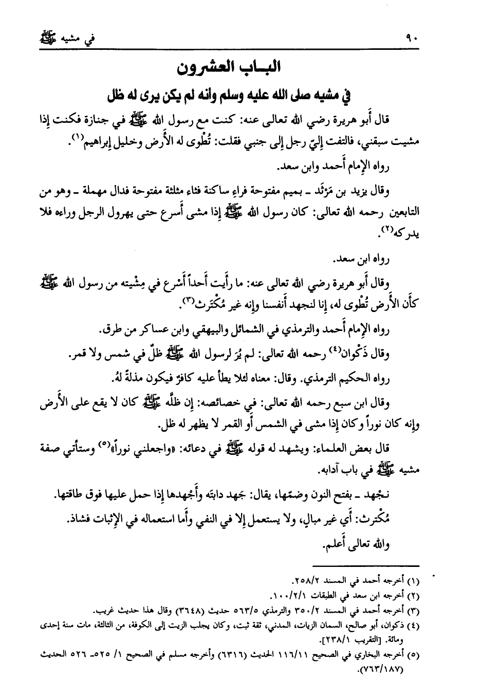 الباب العشرون في مشيه صلى الله عليه وسلم وأنه لم يكن يرى له ظل