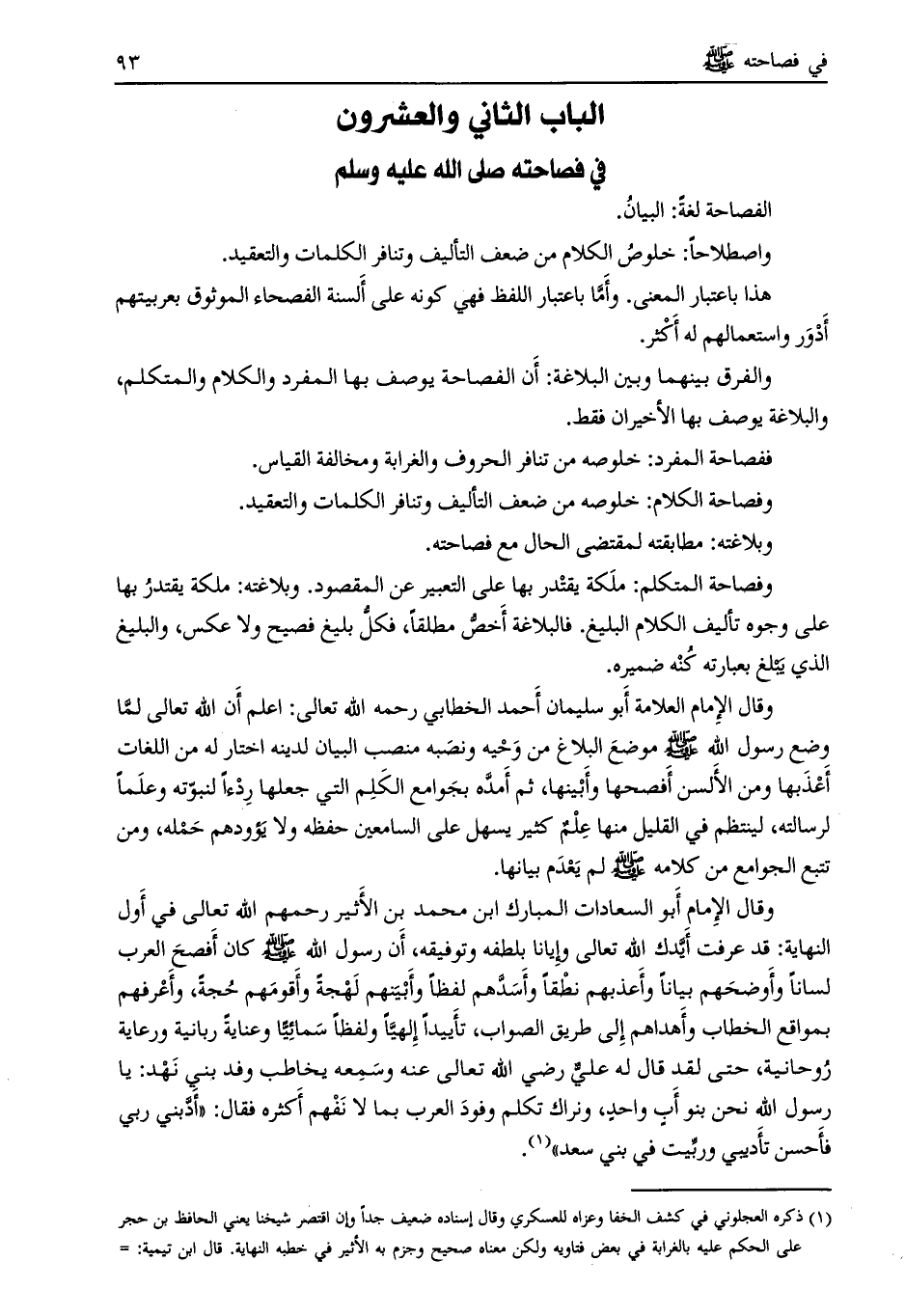 الباب الثاني والعشرون في فصاحته صلى الله عليه وسلم