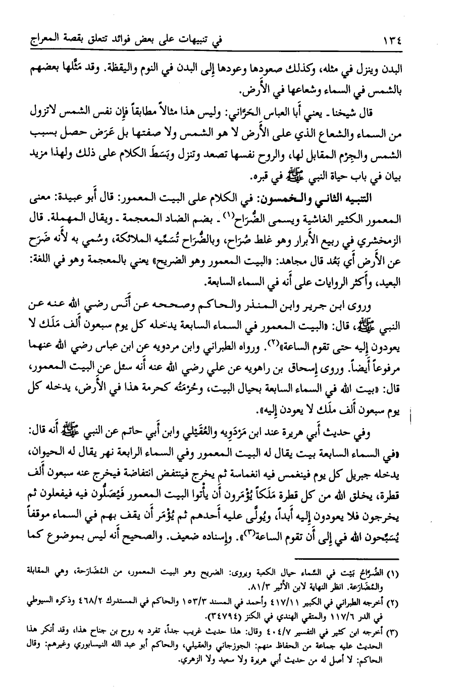 [ (1) ] الضرّاح بيت في السّماء حيال الكعبة ويروى: الضريح وهو البيت المعمور، من المضارحة، وهي المقابلة والمضارعة. انظر النهاية لابن الأثير 3/ 81.