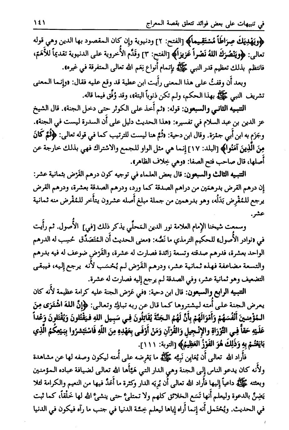 وسمعت شيخنا الإمام العلامة نور الدين المحليّ يذكر ذلك [في] الأصول. ثم رأيت في «نوادر الأصول» للحكيم الترمذي ما نصّه: «معنى الحديث أن المتصدّق حسب له الدرهم الواحد بعشرة، فدرهم صدقته وتسعة زائدة فصارت له عشرة، والقرض ضوعف له فيه بدرهم والتسعة مضاعفة فهذه ثمانية عشر، ودرهم القرض لم يحسب لأنه يرجع إليه، فيبقى التضعيف وهو ثمانية عشر، وفي الصدقة لم يرجع إليه فصارت له عشرة.