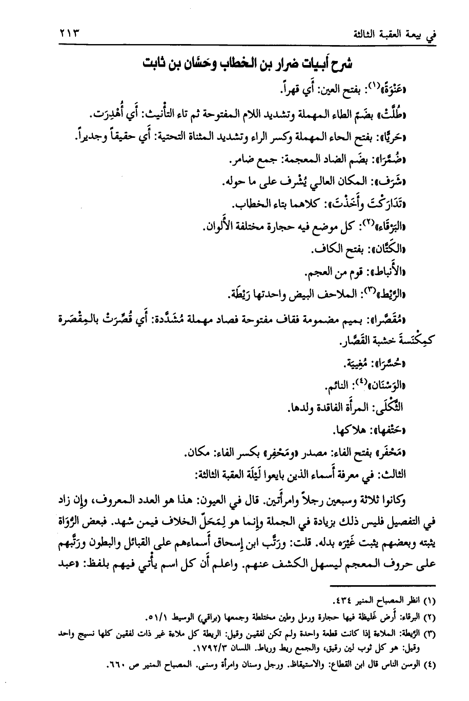 وكانوا ثلاثة وسبعين رجلا وامرأتين. قال في العيون: هذا هو العدد المعروف، وإن زاد في التفصيل فليس ذلك بزيادة في الجملة وإنما هو لمحلّ الخلاف فيمن شهد. فبعض الرّواة يثبته وبعضهم يثبت غيره بدله. قلت: ورتّب ابن إسحاق أسماءهم على القبائل والبطون ورتبهم على حروف المعجم ليسهل الكشف عنهم. واعلم أن كل اسم يأتي فيهم بلفظ: «عبد