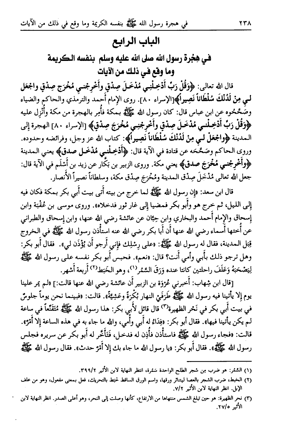 الباب الرابع في هجرة رسول الله صلى الله عليه وسلم بنفسه الكريمة وما وقع في ذلك من الآيات