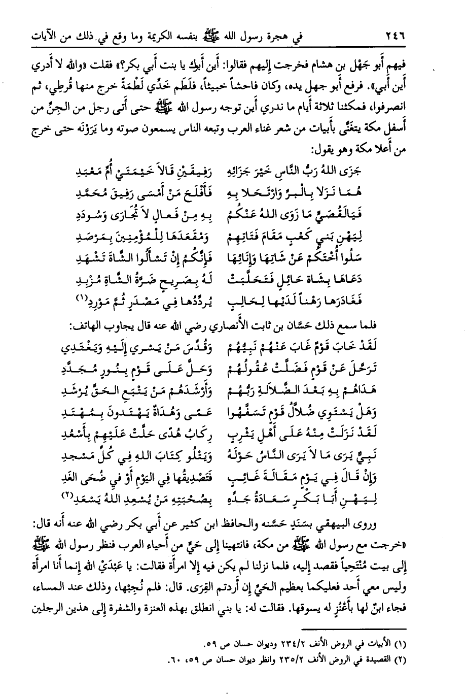 [ (2) ] القصيدة في الروض الأنف 2/ 235 وانظر ديوان حسان ص 59، 60.