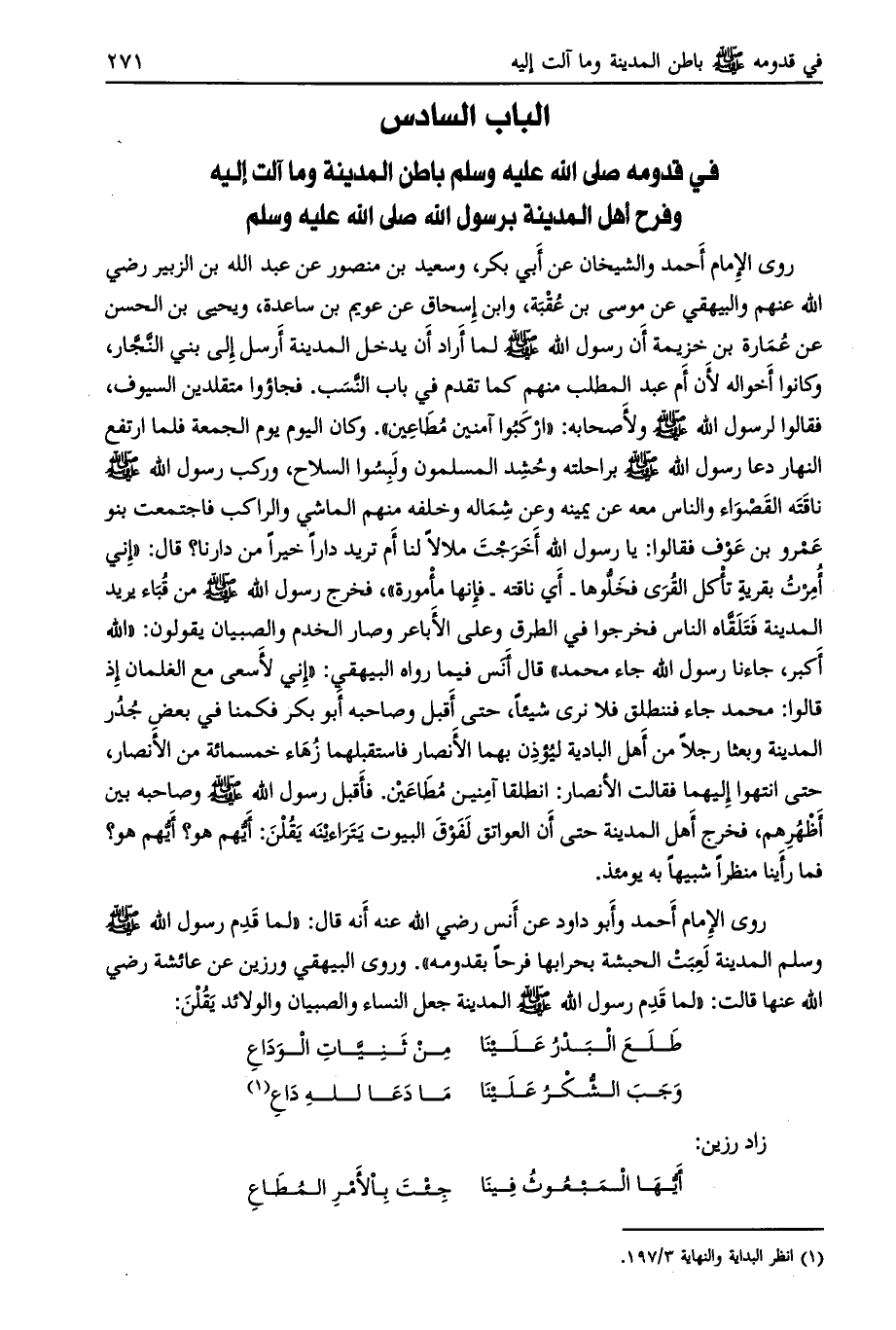 الباب السادس في قدومه صلى الله عليه وسلّم باطن المدينة وما آلت إليه وفرح أهل المدينة برسول الله صلى الله عليه وسلم