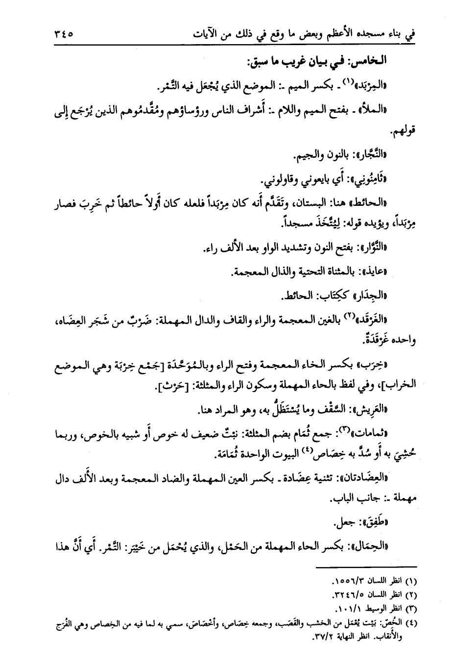 الخامس: في بيان غريب ما سبق: