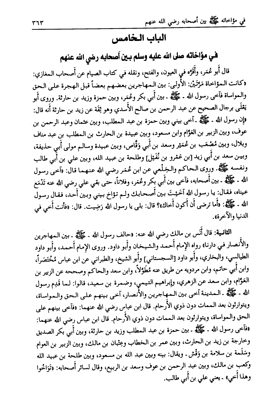الباب الخامس في مؤاخاته صلى الله عليه وسلم بين أصحابه رضي الله عنهم