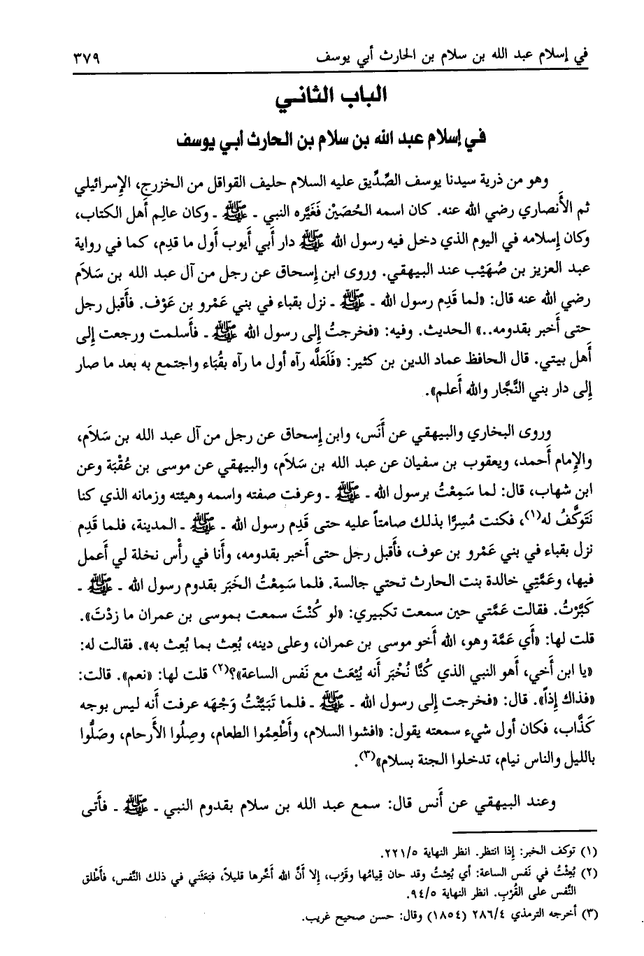 الباب الثاني في إسلام عبد الله بن سلام بن الحارث أبي يوسف