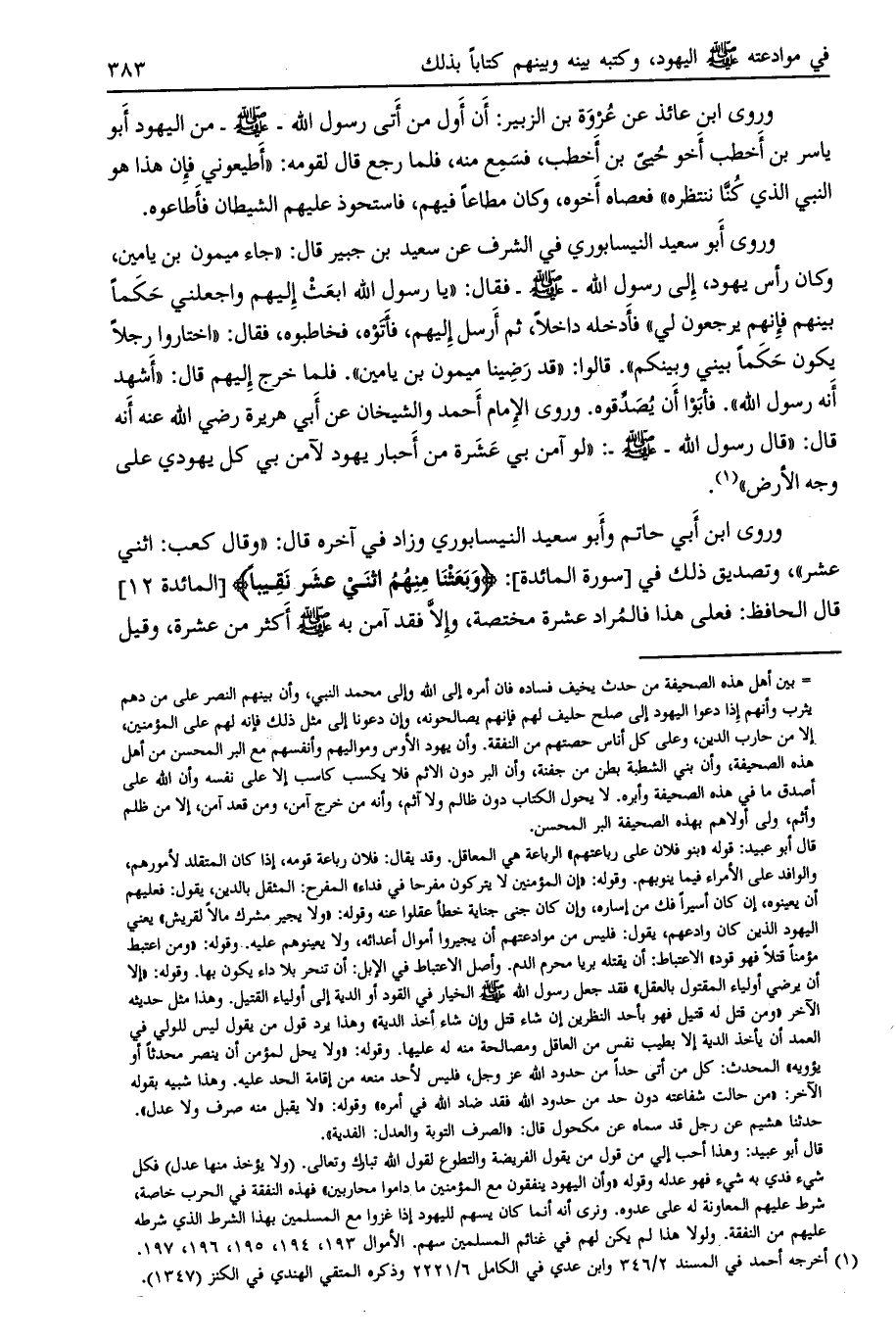 قال أبو عبيد: وهذا أحب إلي من قول من يقول الفريضة والتطوع لقول الله تبارك وتعالى. (ولا يؤخذ منها عدل) فكل شيء فدي به شيء فهو عدله وقوله «وأن اليهود ينفقون مع المؤمنين ما داموا محاربين» فهذه النفقة في الحرب خاصة، شرط عليهم المعاونة له على عدوه. ونرى أنه أنما كان يسهم لليهود إذا غزوا مع المسلمين بهذا الشرط الذي شرطه عليهم من النفقة. ولولا هذا لم يكن لهم في غنائم المسلمين سهم. الأموال 193، 194، 195، 196، 197.
