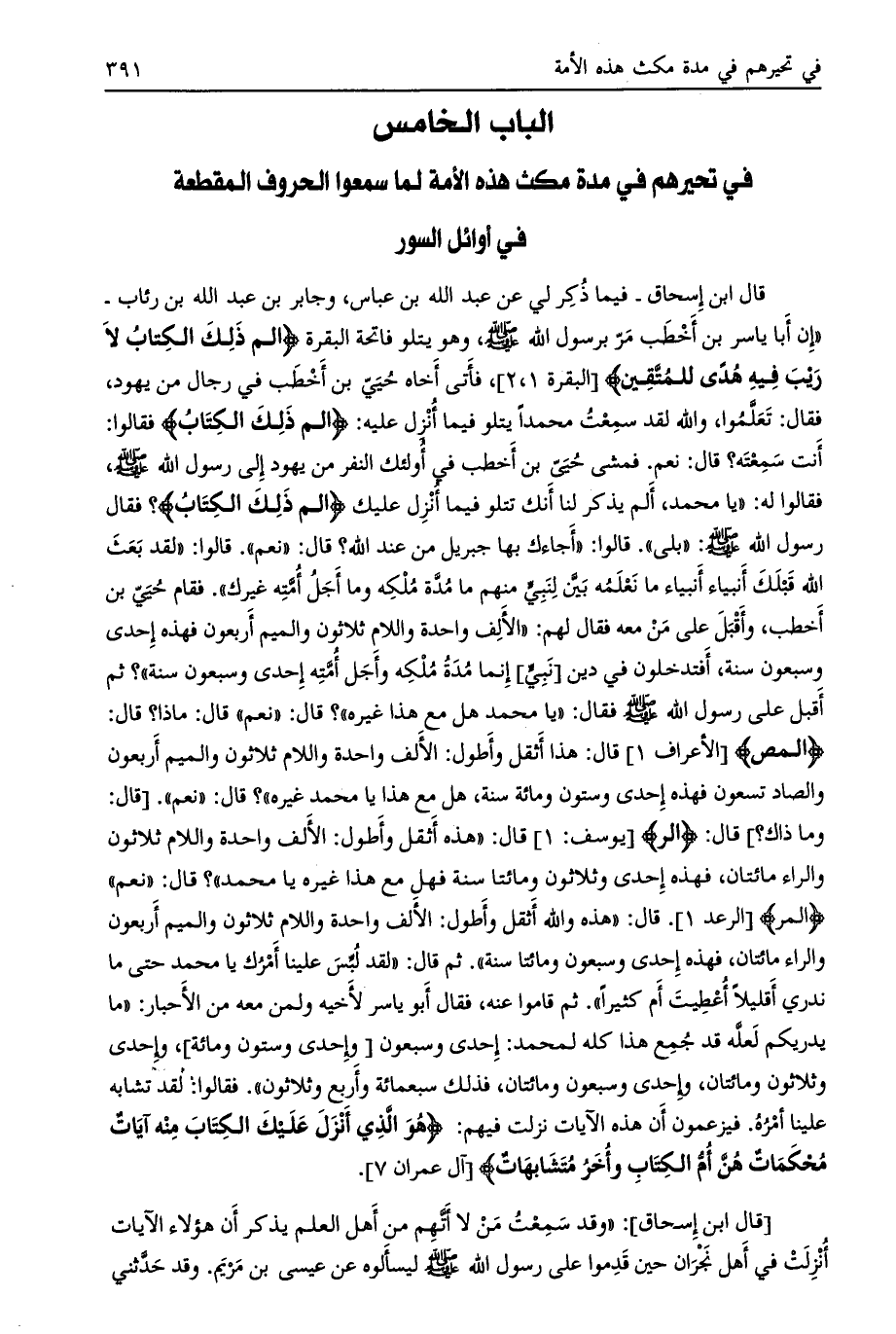 الباب الخامس في تحيّرهم في مدة مكث هذه الأمة لمّا سمعوا الحروف المقطعة في أوائل السور