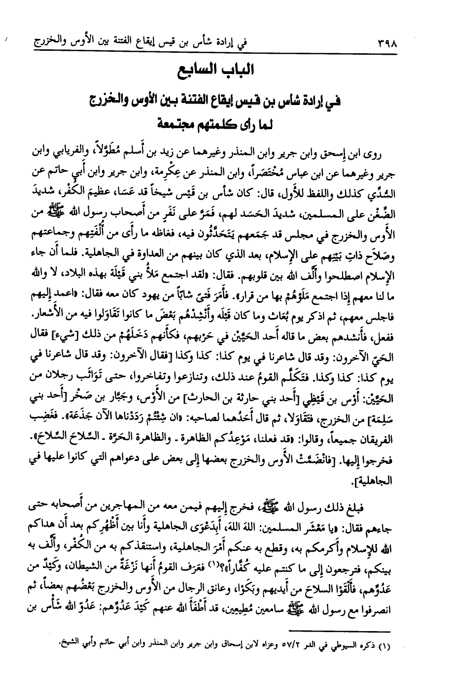 الباب السابع في إرادة شأس بن قيس إيقاع الفتنة بين الأوس والخزرج لما رأى كلمتهم مجتمعة