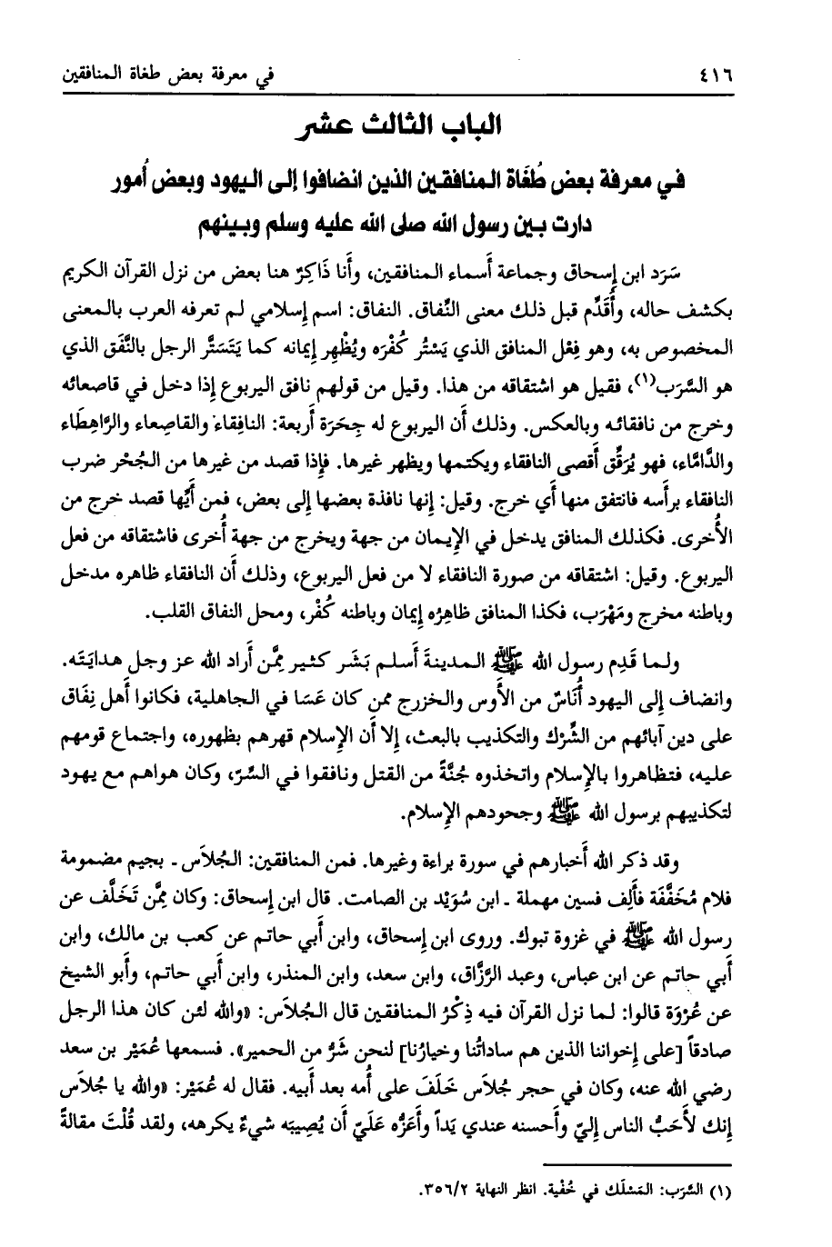 الباب الثالث عشر في معرفة بعض طغاة المنافقين الذين انضافوا إلى اليهود وبعض أمور دارت بين رسول الله صلى الله عليه وسلم وبينهم