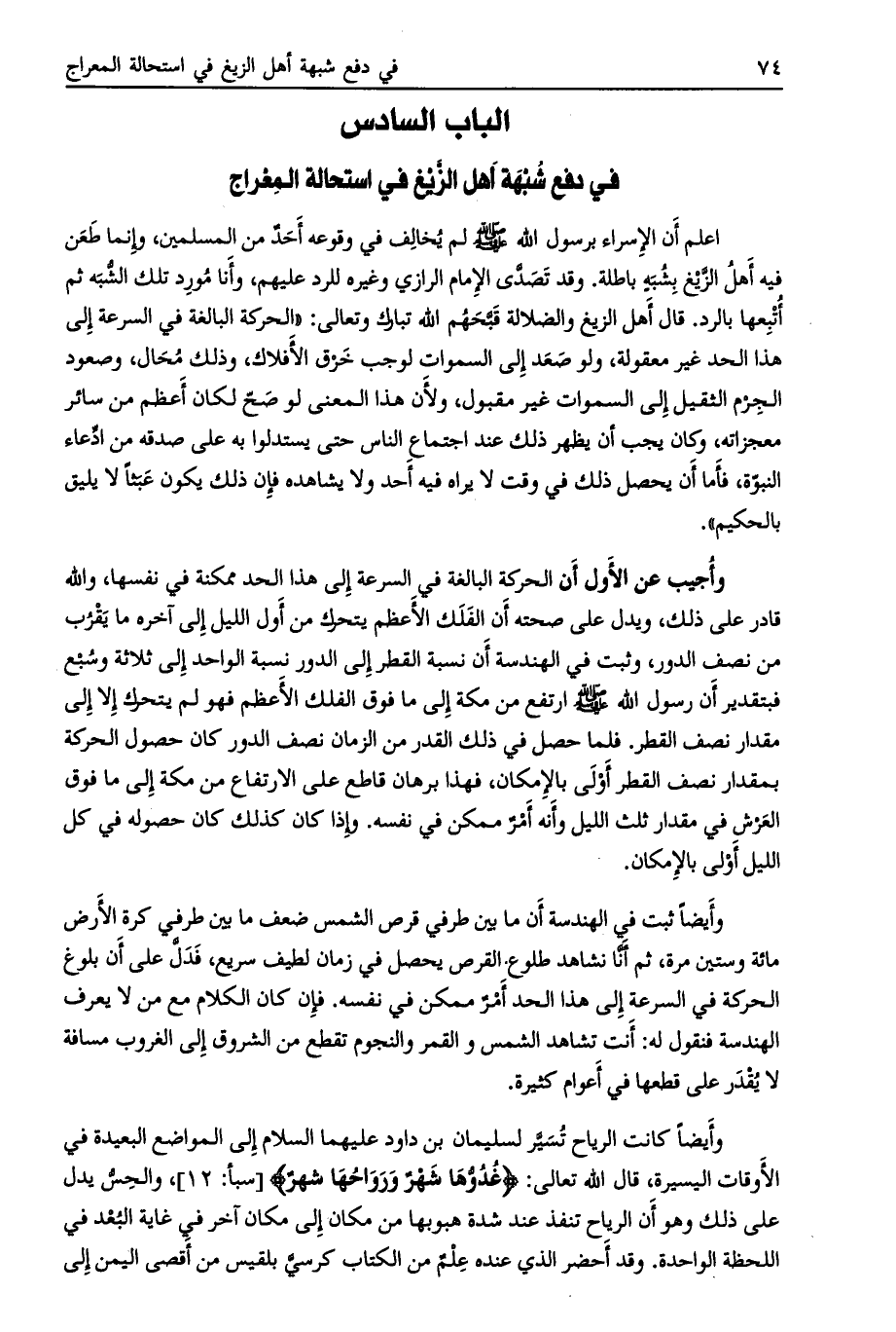 الباب السادس في دفع شبهة أهل الزّيغ في استحالة المعراج
