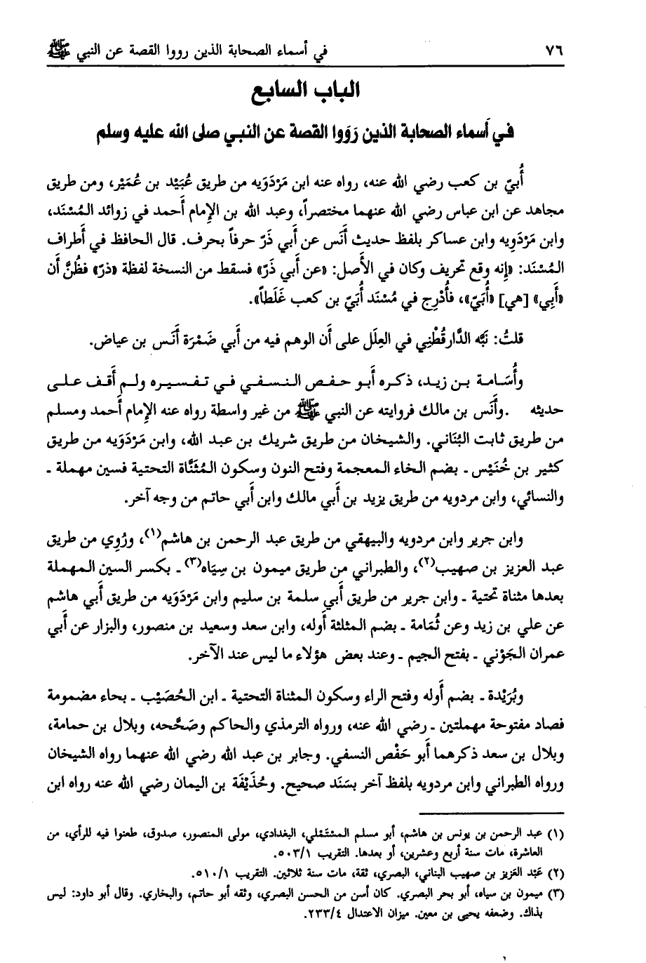 الباب السابع في أسماء الصحابة الذين رووا القصة عن النبي صلى الله عليه وسلم