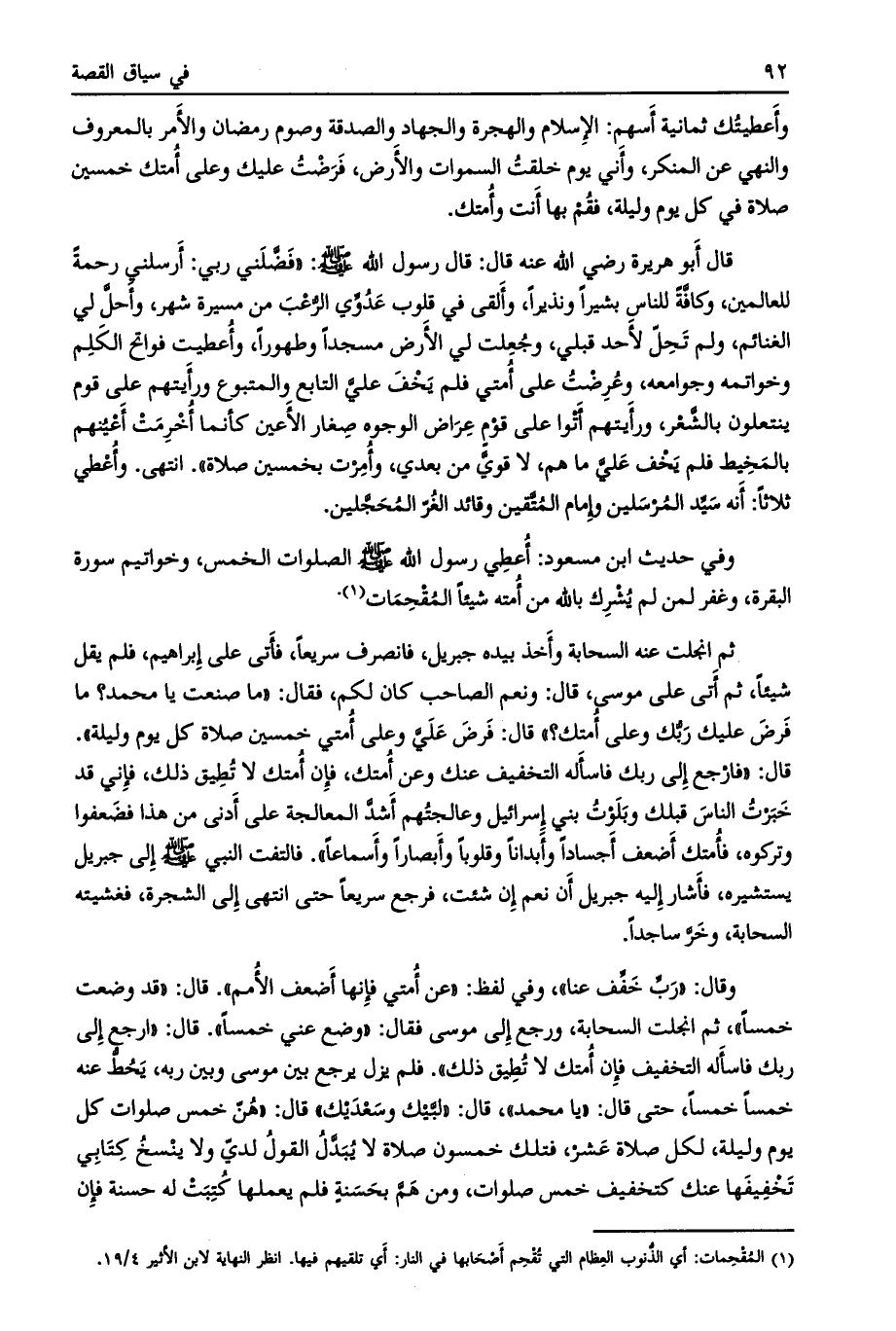 وأعطيتك ثمانية أسهم: الإسلام والهجرة والجهاد والصدقة وصوم رمضان والأمر بالمعروف والنهي عن المنكر، وأني يوم خلقت السموات والأرض، فرضت عليك وعلى أمتك خمسين صلاة في كل يوم وليلة، فقم بها أنت وأمتك.