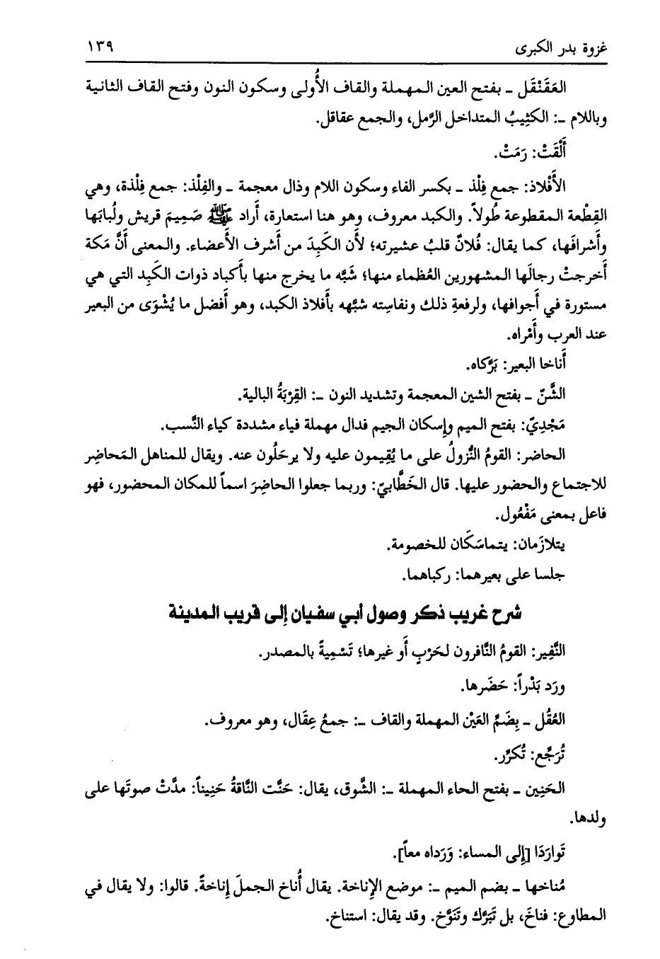شرح غريب ذكر وصول أبي سفيان إلى قريب المدينة