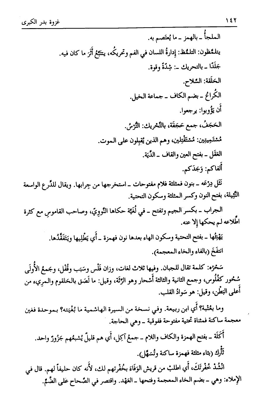 نثل درعه- بنون فمثلثة فلام مفتوحات- استخرجها من جرابها. ويقال للدّرع الواسعة النّثيلة، بفتح النون وكسر المثلثة وسكون التحتية.