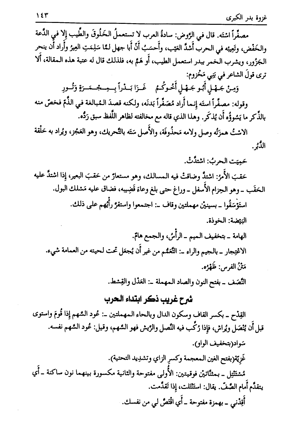 شرح غريب ذكر ابتداء الحرب