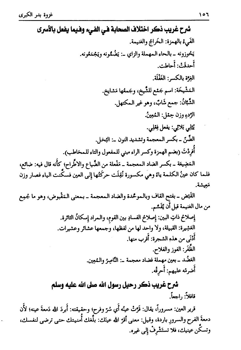 شرح غريب ذكر رحيل رسول الله صلى الله عليه وسلم
