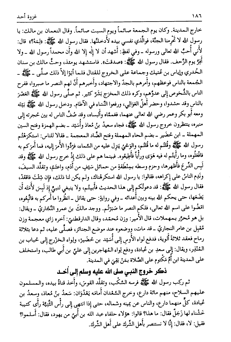 ذكر خروج النبي صلى الله عليه وسلم إلى أحد