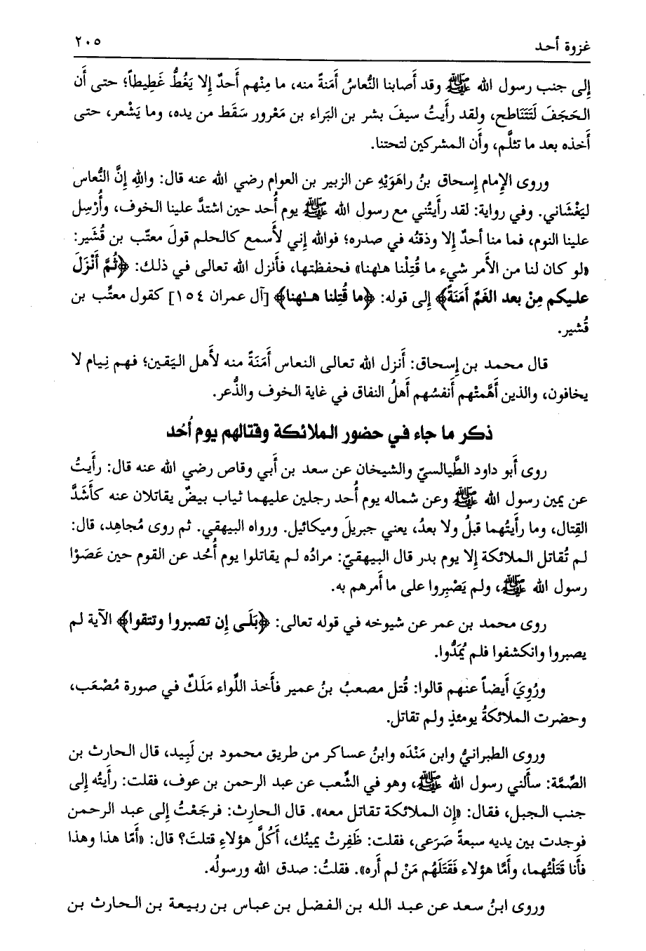ذكر ما جاء في حضور الملائكة وقتالهم يوم أحد