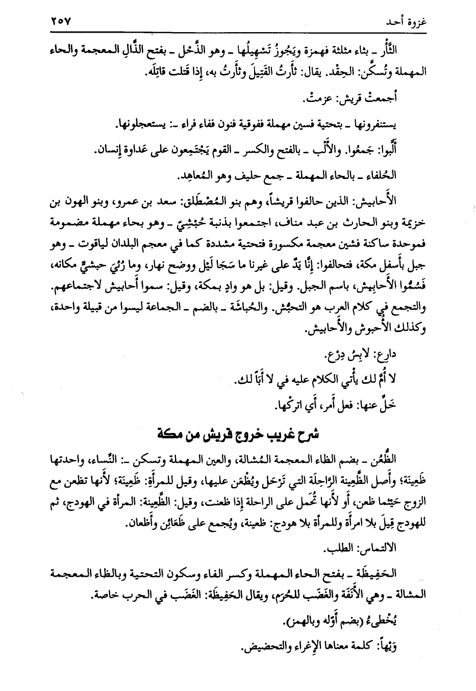 شرح غريب خروج قريش من مكة