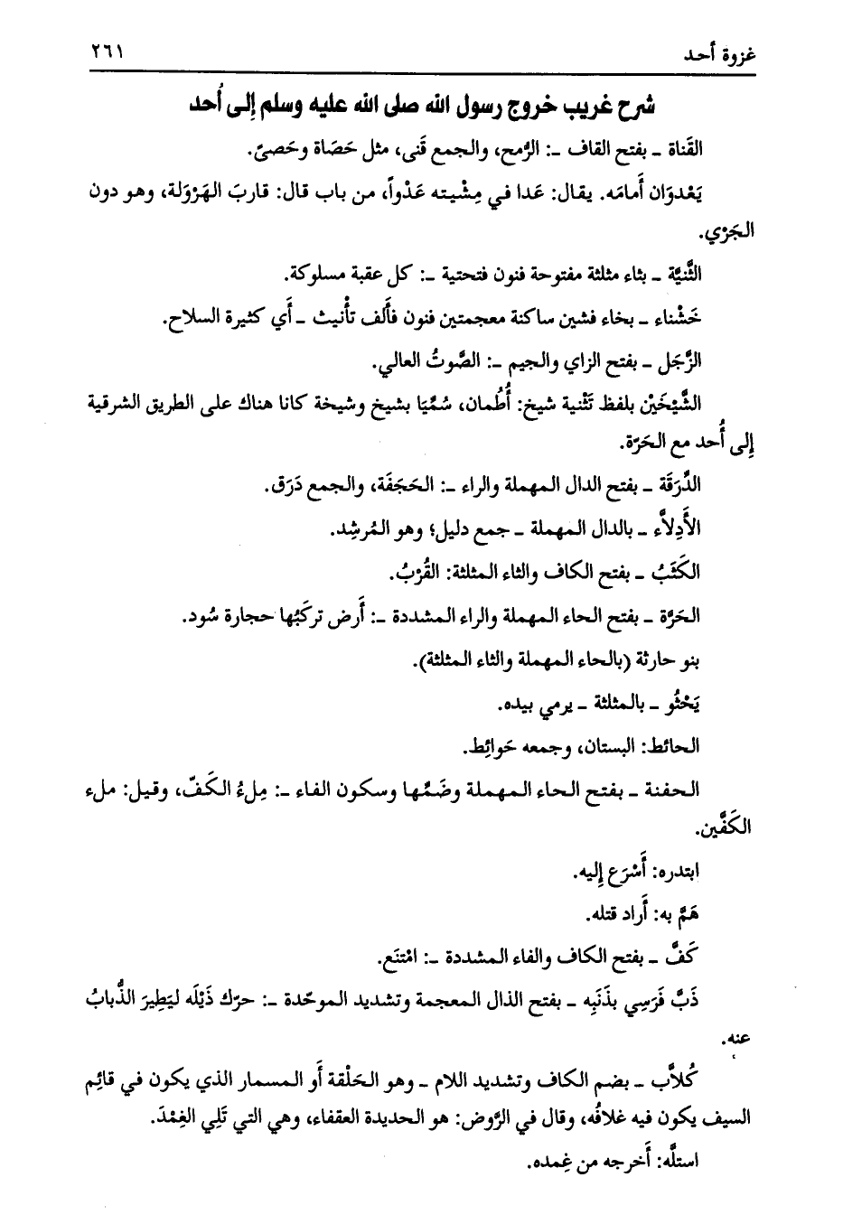 شرح غريب خروج رسول الله صلى الله عليه وسلم إلى أحد
