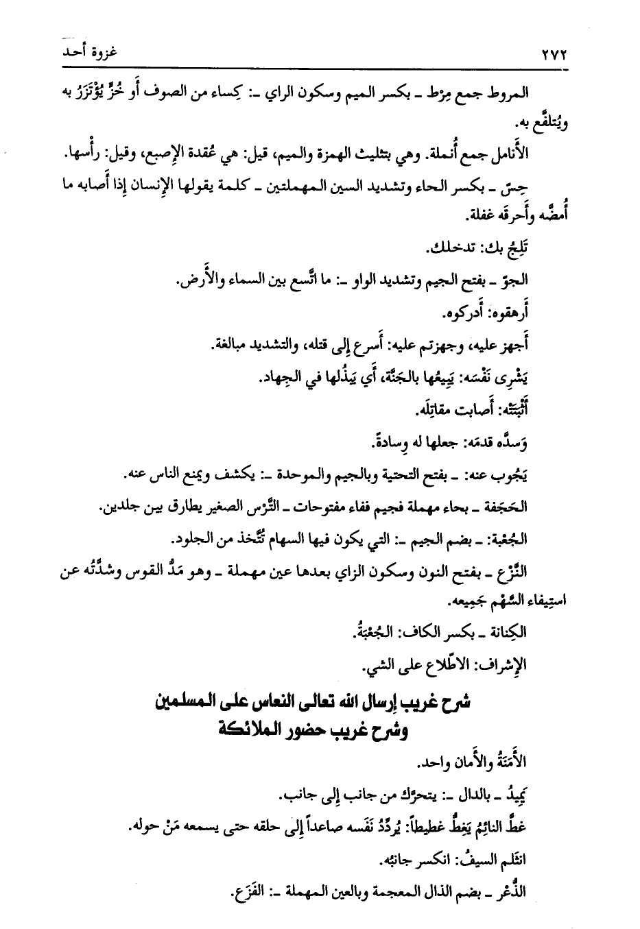 شرح غريب إرسال الله تعالى النعاس على المسلمين وشرح غريب حضور الملائكة
