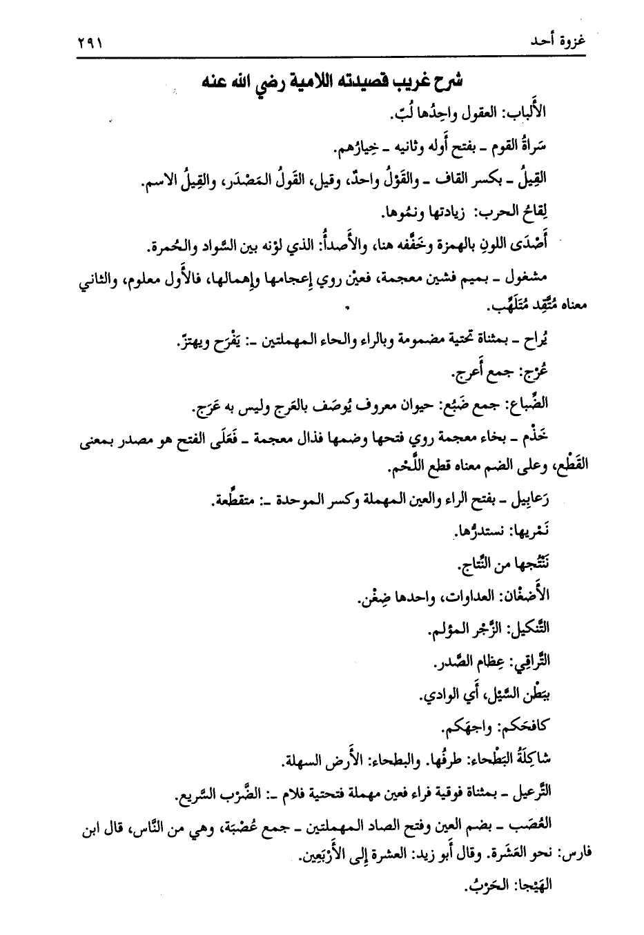 شرح غريب قصيدته اللامية رضي الله عنه